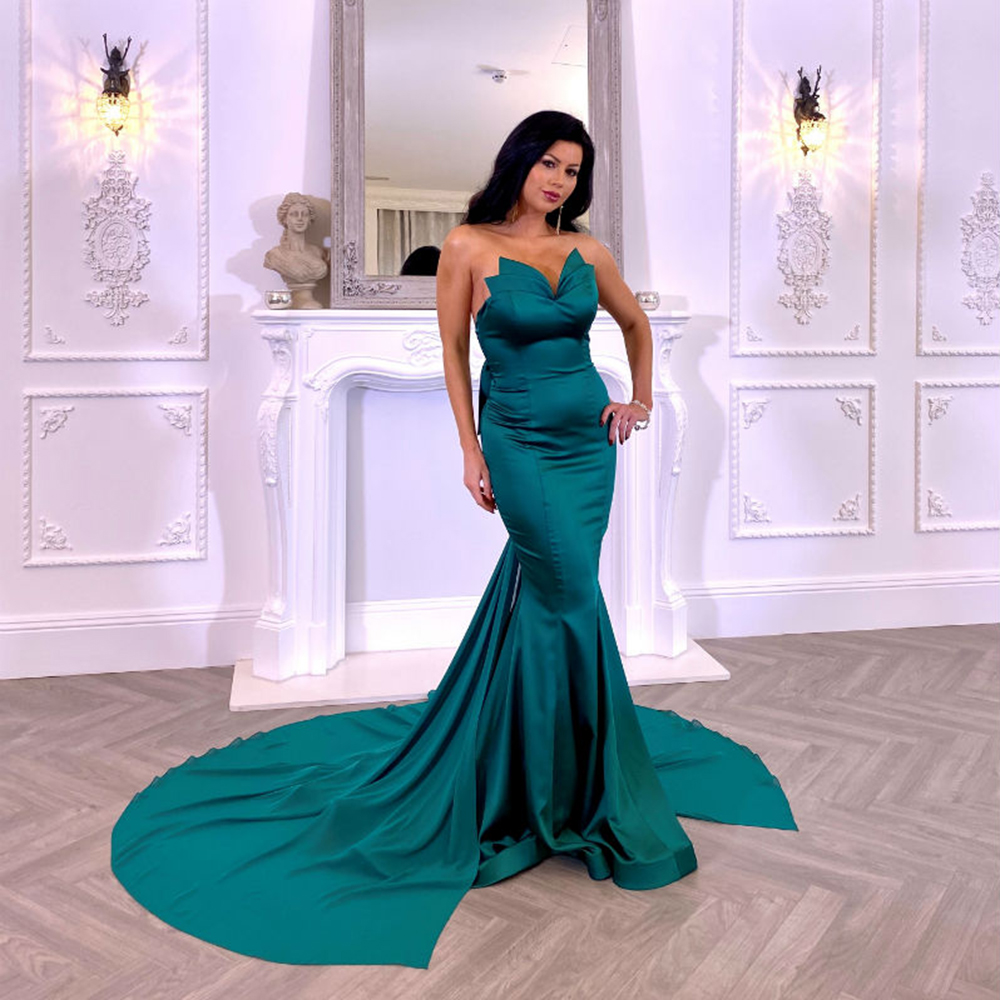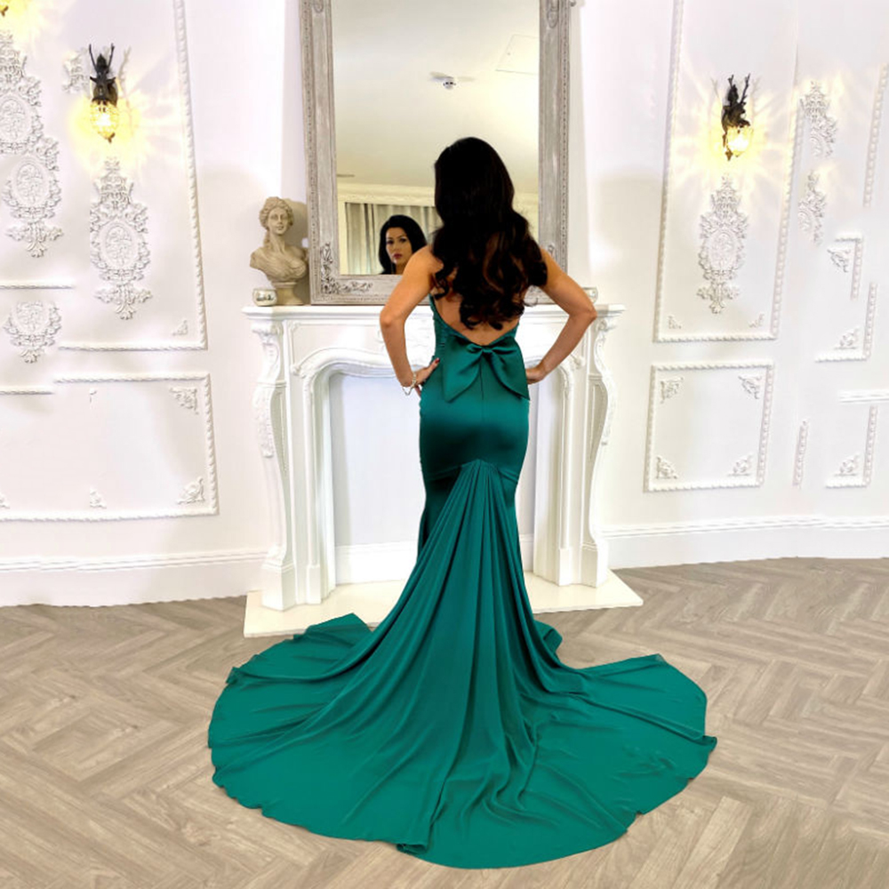 Chic Green Mermaid Satin Prom Dress Sexy Sweetheart Backless Evening Gowns