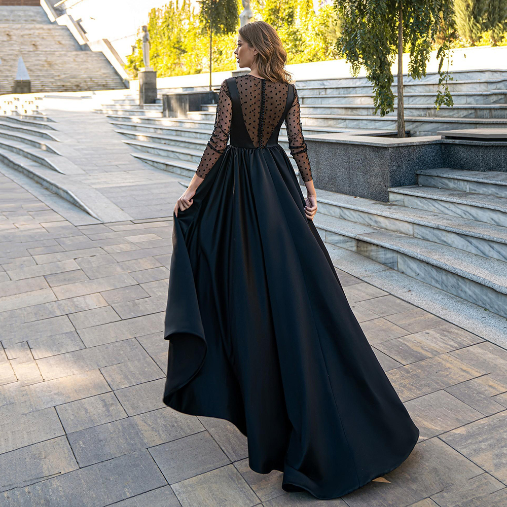 Elegant Satin Evening Dress Scoop Neck Long Sleeves Beading Evening Gown A-Line High-Low Prom Dress