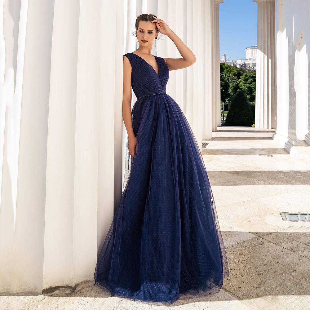 New Arrival A-Line Evening Dress V-Neck Sleeveless Pleats Dots Net Evening Gown