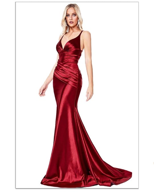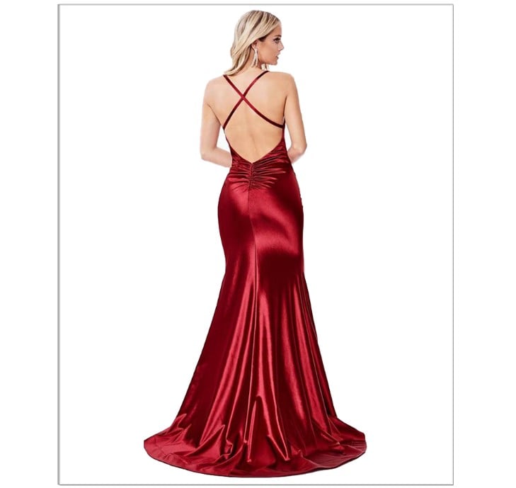 Elegant Low Cut Spaghetti Strap Stretchy Satin Evening Dress