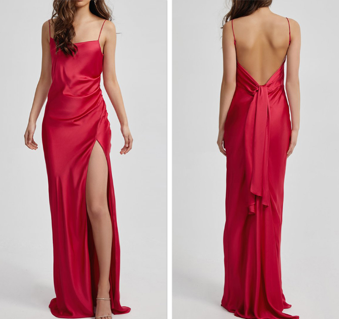 Sexy Spaghetti Strap Square Neck Backless Lace Up Ribbon Evening Gown