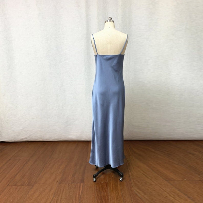 Cowl Neck Dusty Blue Real Silk Midi Dress