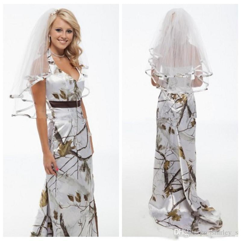 Beautiful Camo Mermaid Wedding Dresses Hlater Neck Satin Bridal Gowns