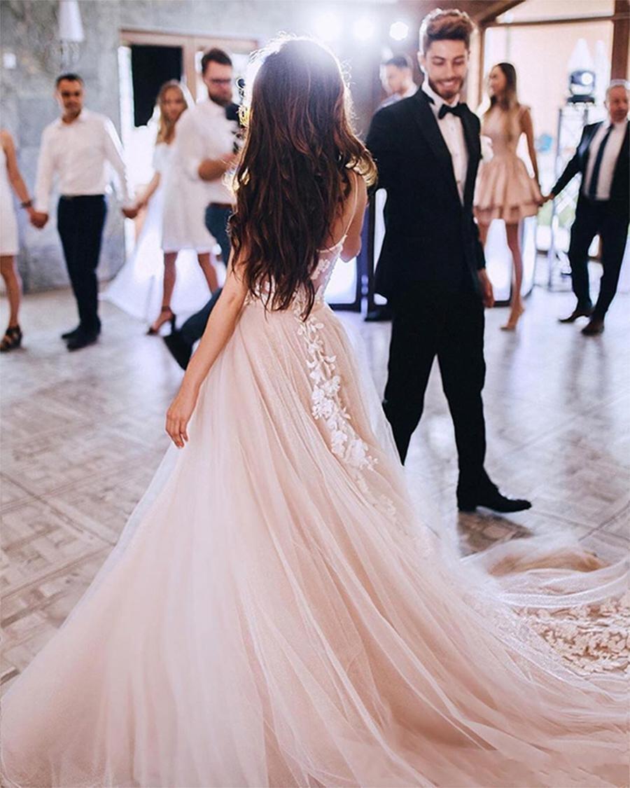 Romantic Bohemian Sexy Blush Pink Plus Size Country Style Wedding Dresses Spaghetti Strap A Line Tulle Applique Boho Wedding Bridal Gowns