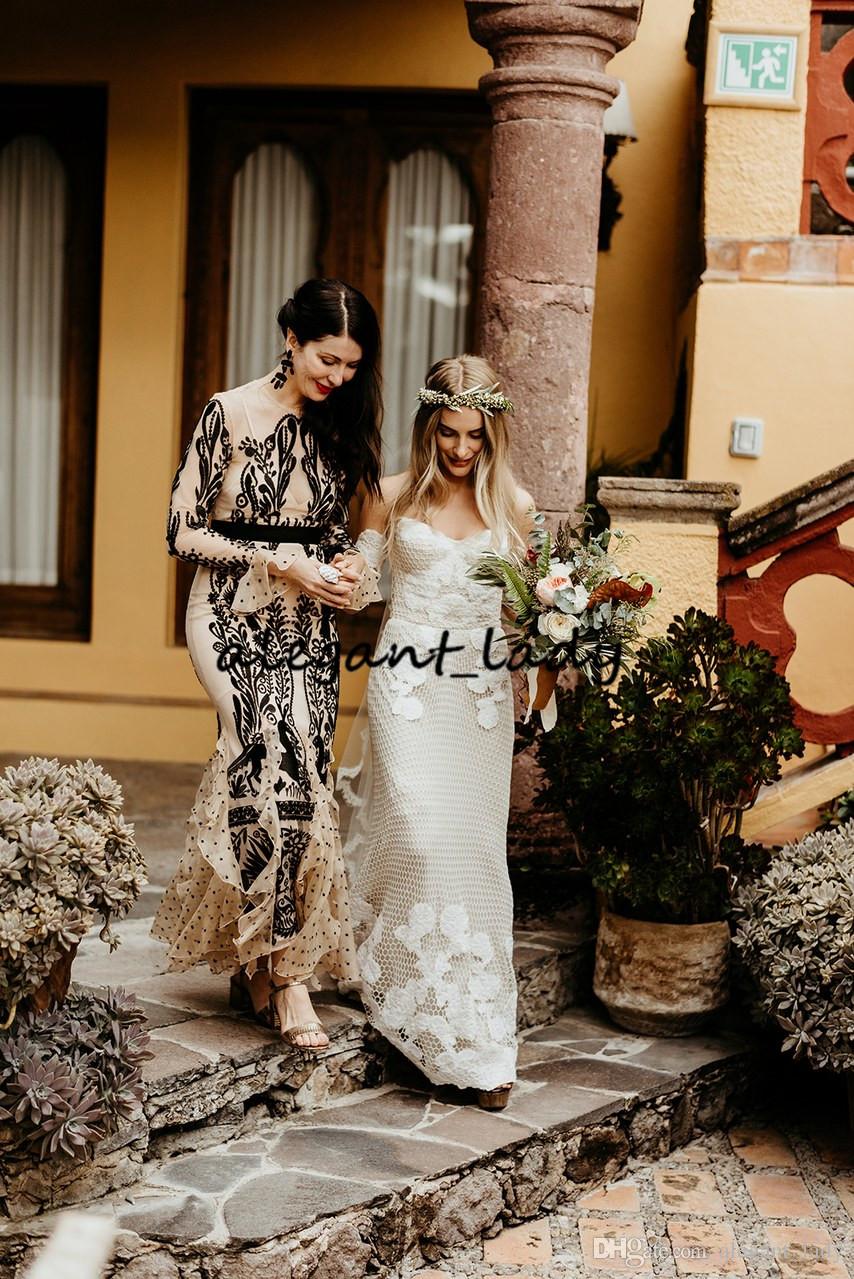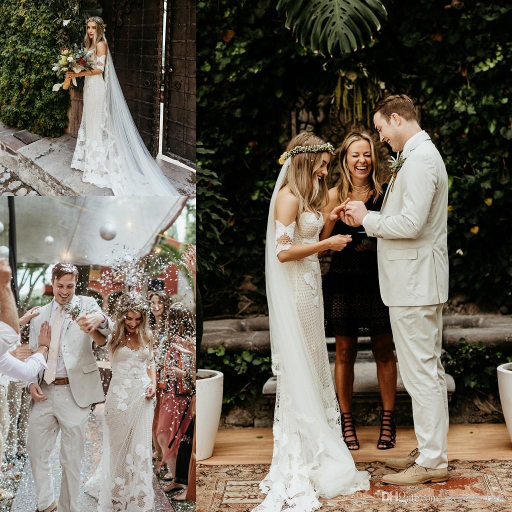 Vintage Spanish Wedding Dresses Mermaid Elegant Romantic Grid yarn lace bohemian country beach Bridal gowns