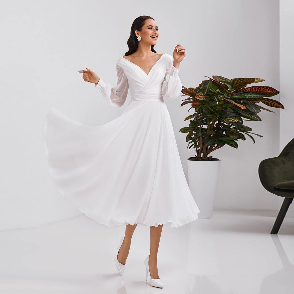 Boho Beach Wedding Dress Short Sexy Ivory Long Sleeves Chiffon BrideGowns V Neck Backless Bridal Dresses