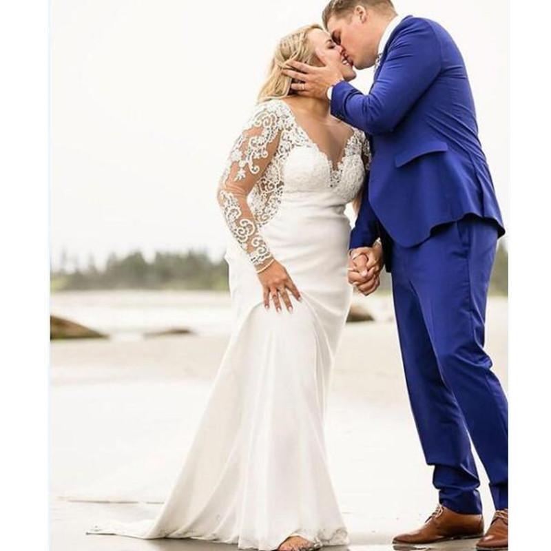 Vintage Long Sleeve V-Neck Lace and Satin Mermaid Wedding Dresses New Arrival Plus Size button Back Bridals Gown