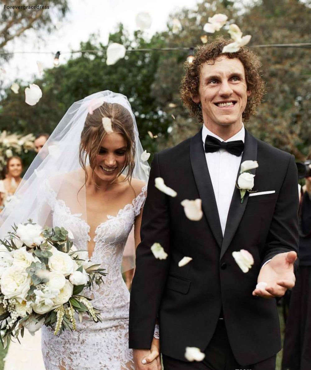 Boho Lace Mermaid Wedding Dress Sexy Front Split Sheer Long Sleeves Open Back Vestido De Noiva Bohemia Bridal Gowns