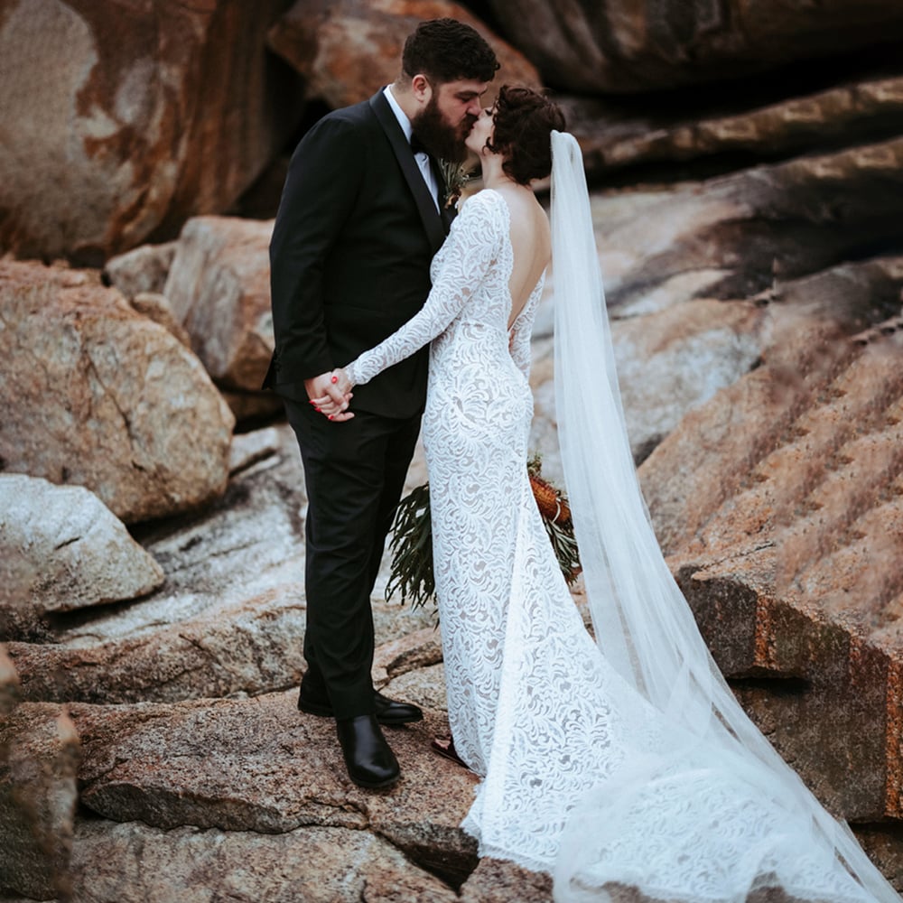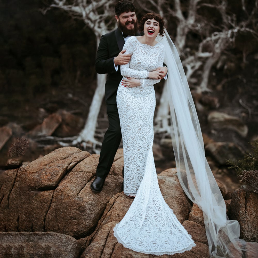 Mermaid Long Fitted Sleeves Wedding Dress Rustic Boat Neck Backless Floral Lace Bridal Gown