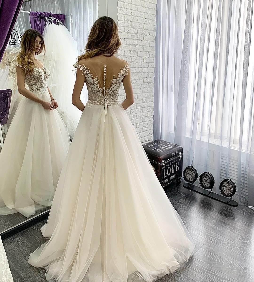 Ivory Bohemian Wedding Dresses Sheer Jewel Neck Lace Appliqued A Line Plus Size Boho Wedding Dress Sweep Train Cheap Bridal Gowns
