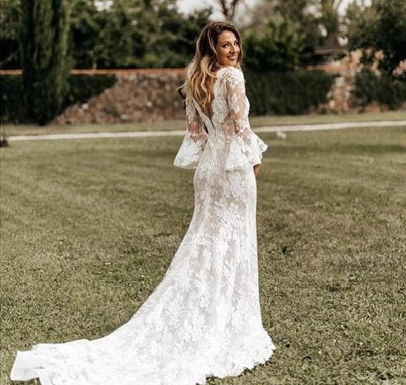Stylish Bohemian Mermaid Lace Wedding Dresses V Neck Long Sleeves Bridal Gowns