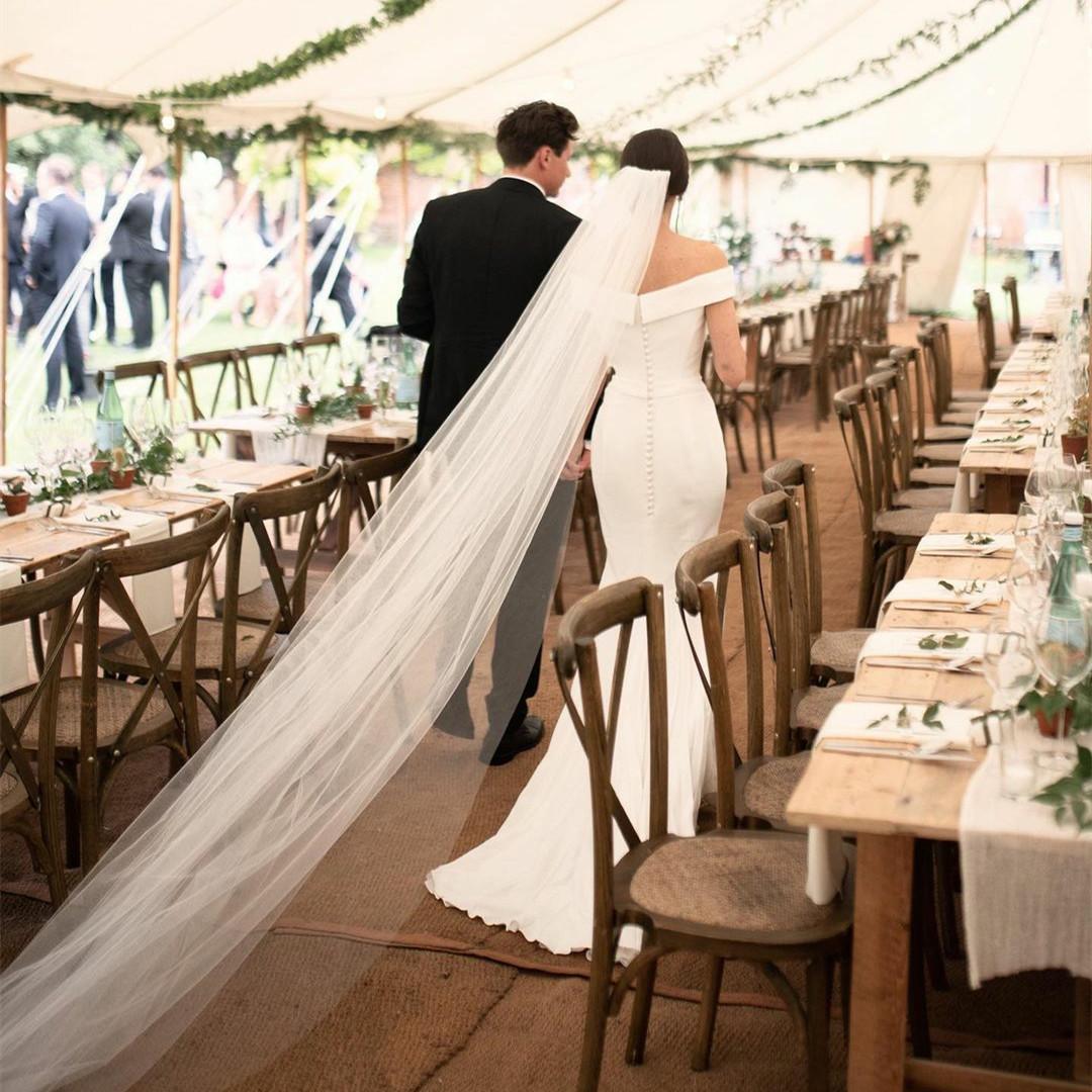 Vintage Crepe Off Shoulder Wedding Dresses Satin Mermaid Bridal Gowns