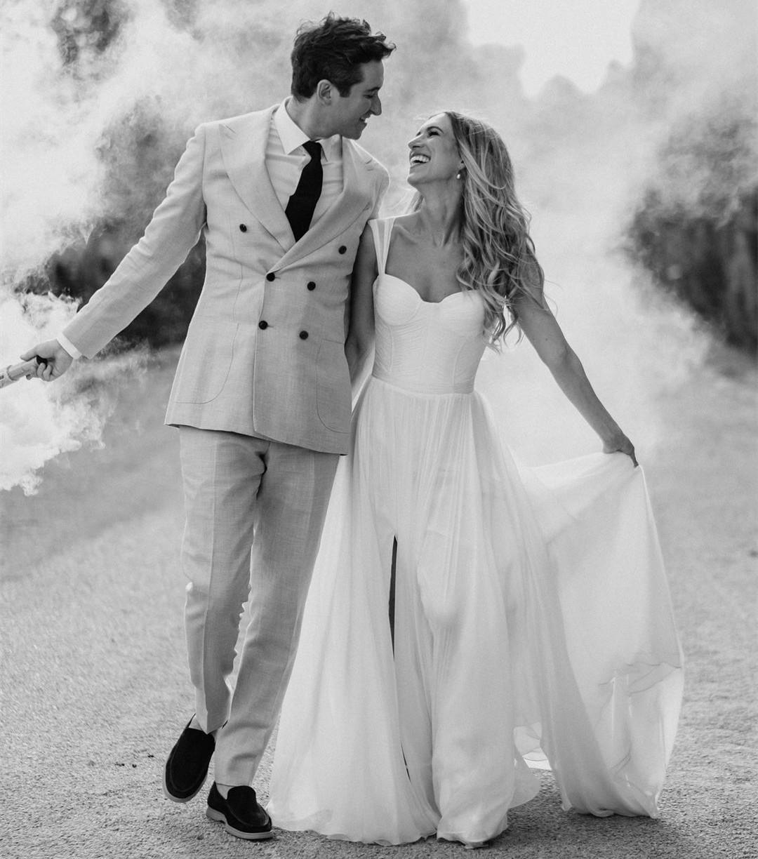 White Side Split Wedding Dresses Spaghetti Strap Bridal Gowns Chiffon A Line Garden Sweep Train
