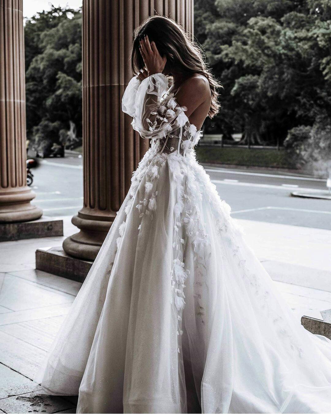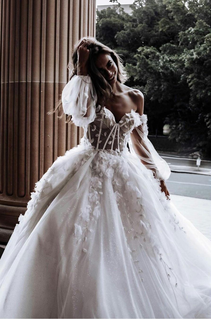 Bohemian Long Wedding Dresses Sweetheart Illusion Top Long Sleeve vestido de novia Backless Off Shoulder Bridal Wedding Gowns