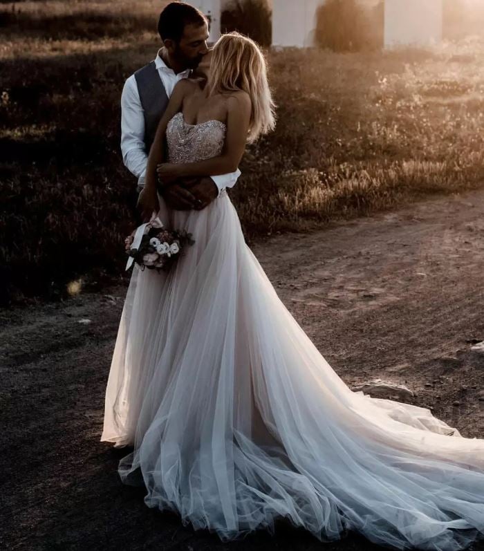 Bohemian Wedding Dresses Sweetheart Lace Beads Appliqued Boho Wedding Dress