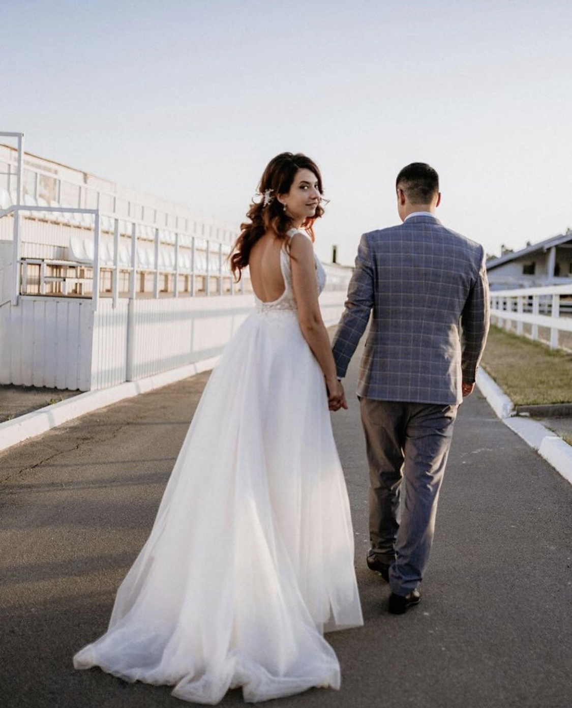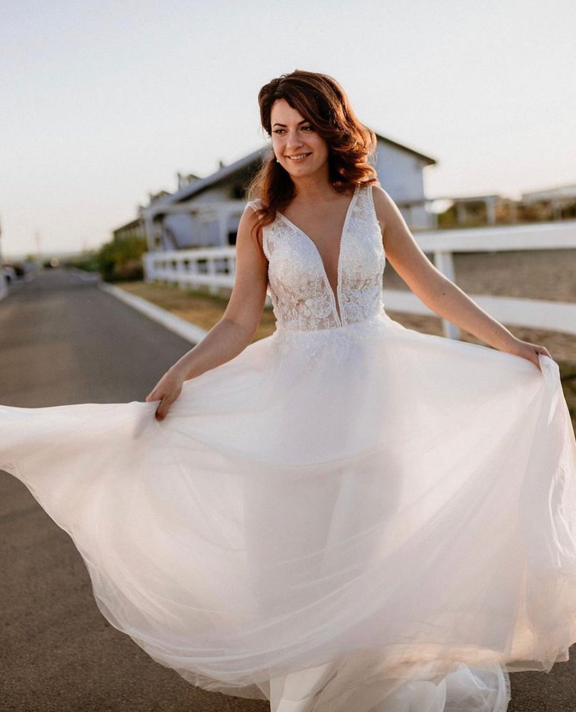 A-Line V-Neck Tank Lace Appliques Sequined Beads Backless Floor Length Sweep Train Gorgeous Bride Gown
