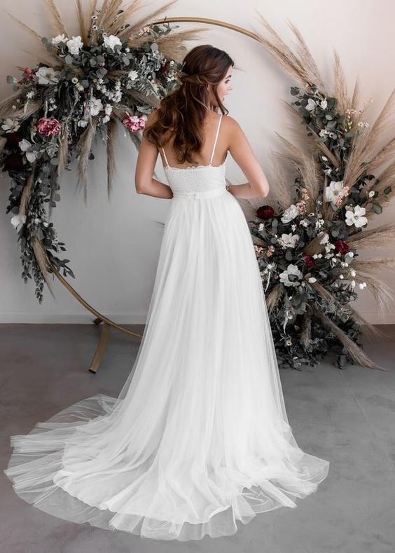 Spaghetti Straps Long Lace Chiffon Wedding Dress