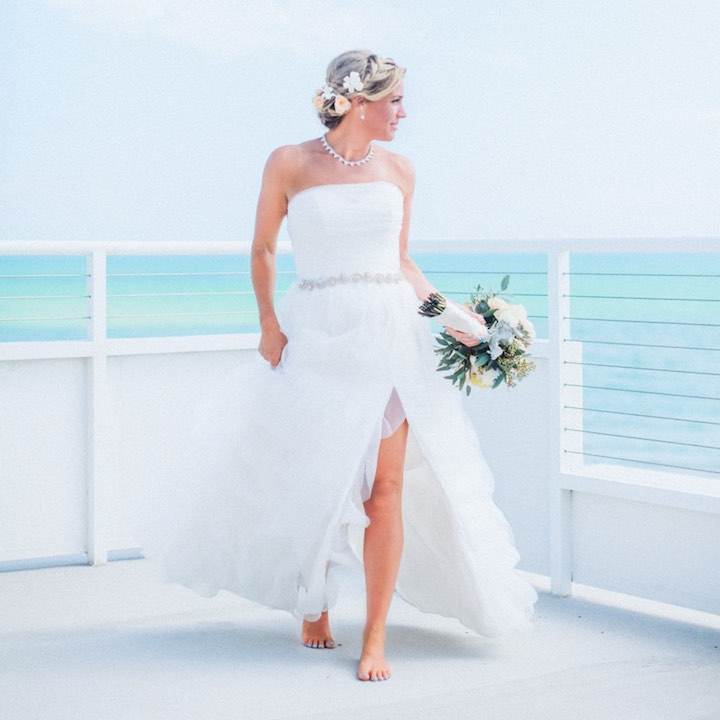 Strapless Long A-line Organza Wedding Dresses, Side Slit Wedding Dresses