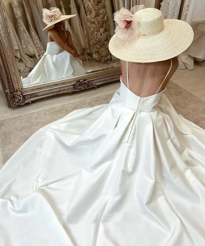 Spaghetti Straps Garden Wedding Dresses Satin A Line Bridal Gowns