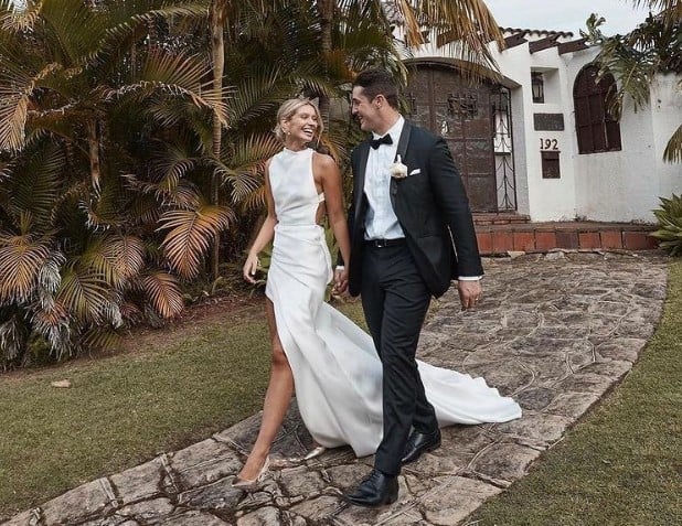 Chic Sheath High Neck White Wedding Dresses with Side Slit