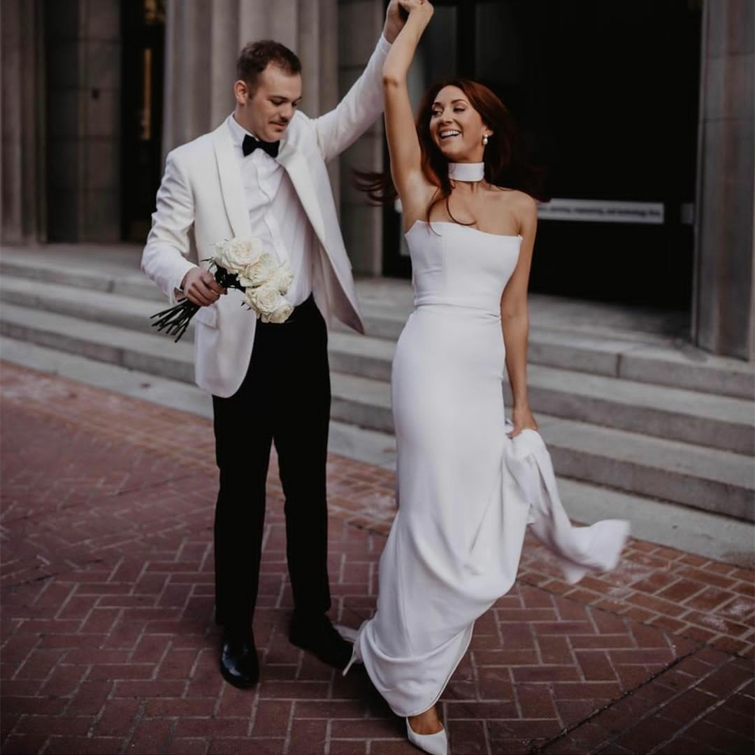 Elegant Long Crepe Wedding Dresses Mermaid Sleeveless Sweep Train Bridal Dress