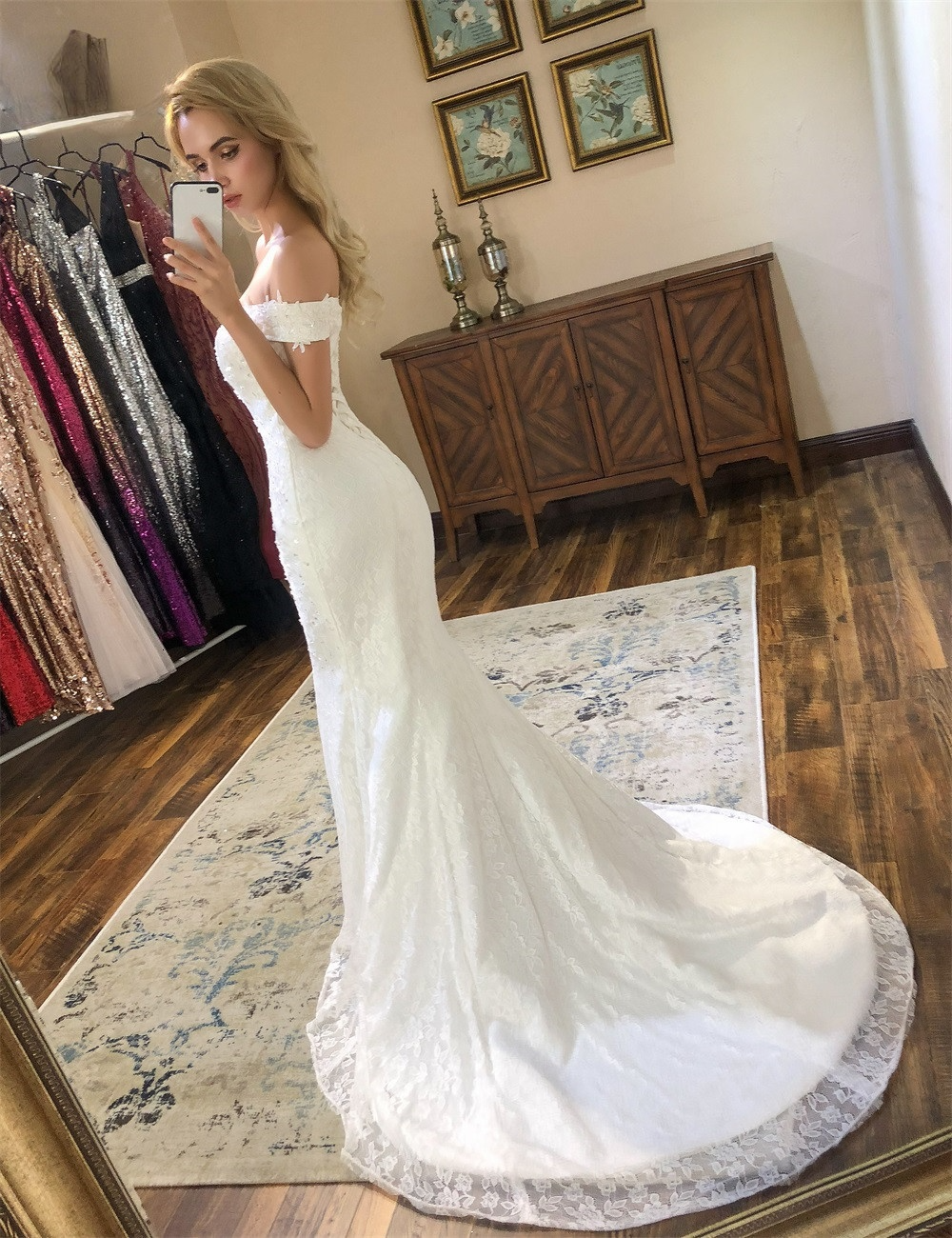 new style boat neck beautiful lace wedding dress Vestido de noiva Wedding gowns