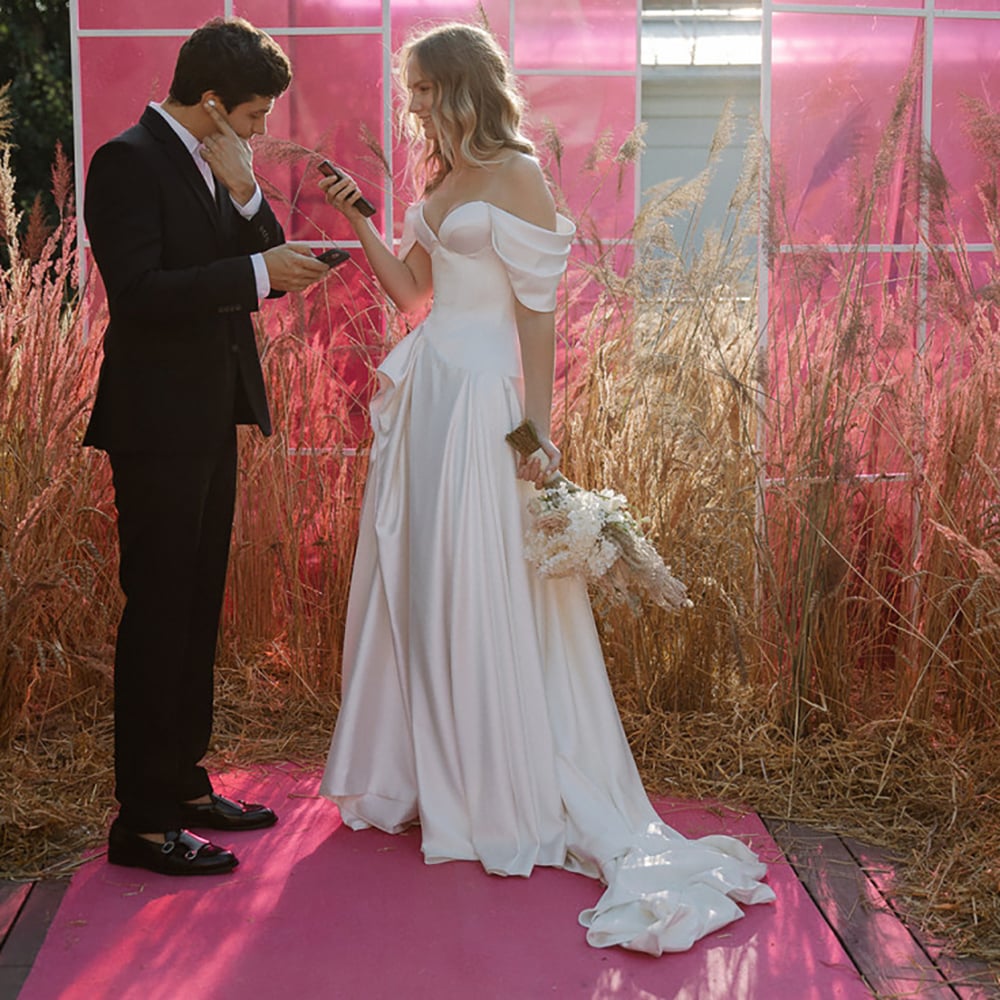 Off Shoulder Simple Satin Dropped Low Waist Wedding Dress