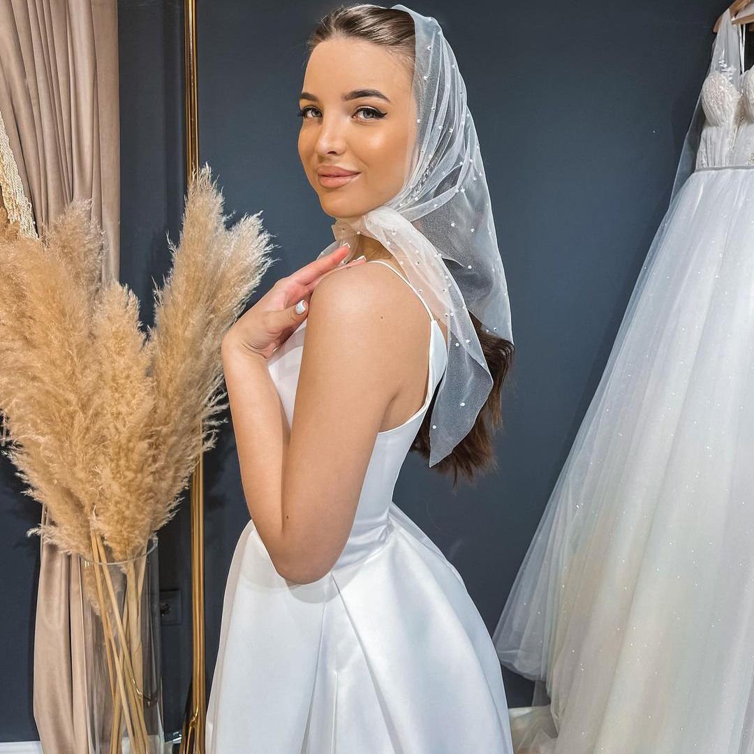 Sexy Wedding Dresses Spaghetti Straps Satin A-Line Bride Gowns