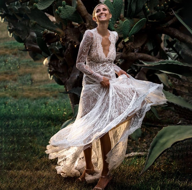 Sheer Lace Wedding Dress Long Sleeves Deep V Neck Plus Size A Line Custom Made Boho Maxi Hipple Rustic Photography Bridal Gowns