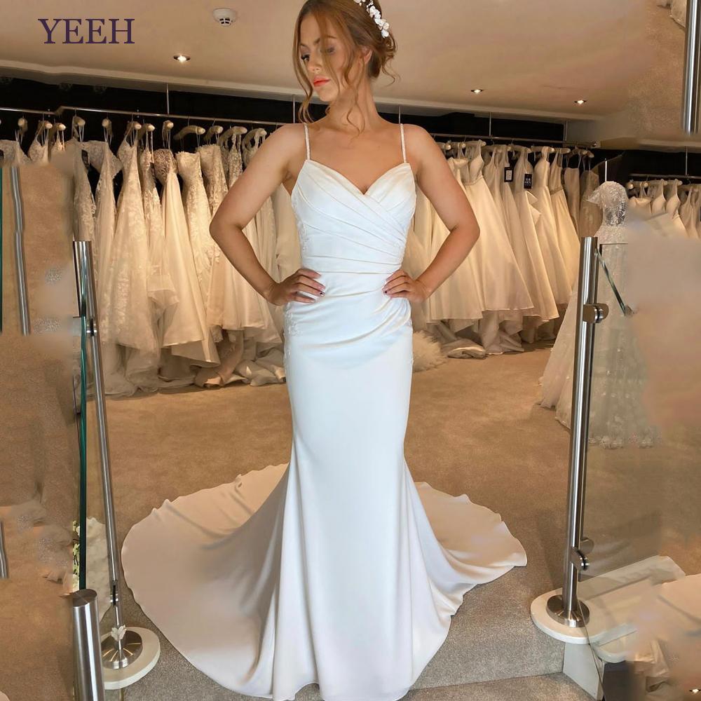 Simple Stain Appliques V-Neck Spaghetti Straps Wedding Dresses