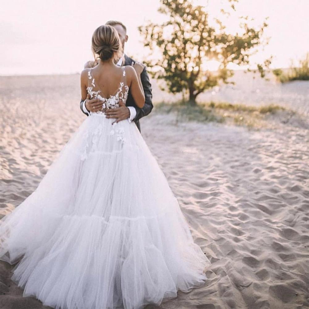 A Line V Neck Summer Beach Boho Bridal Gowns Floor Length White Ivory Outdoor Country Lady Marriage Dresses