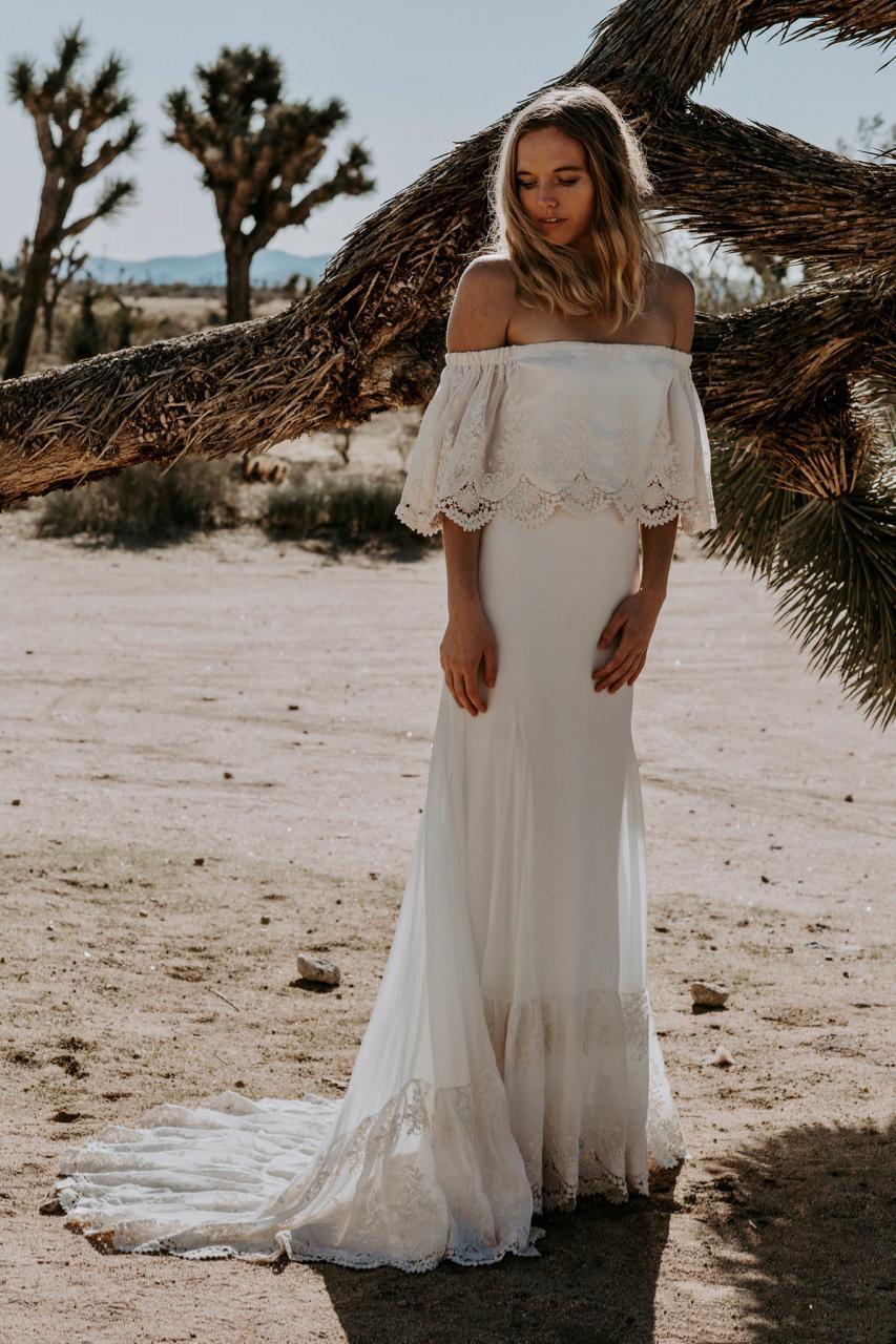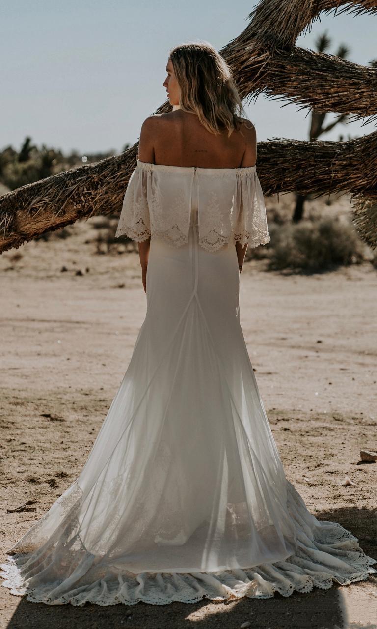Boho Summer Beach Wedding Dresses Off the Shoulder Lace Chiffon Mermaid Bridal Gowns