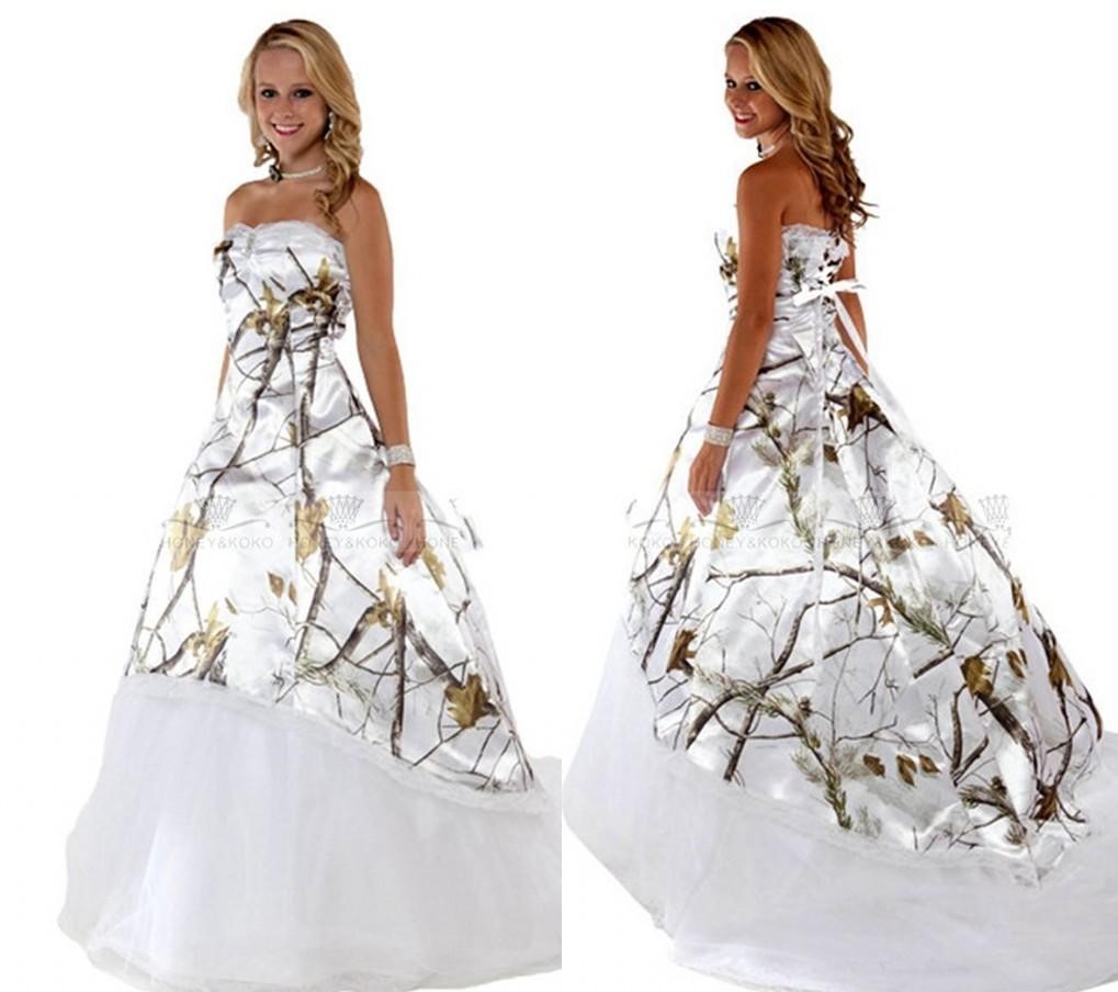 Unique Sweetheart Camo Wedding Dresses With Veil White Real Tree A-Line Bridal Gowns