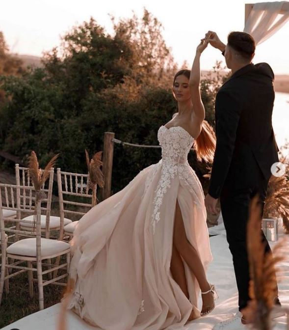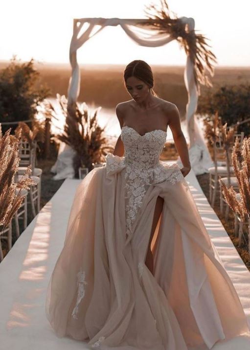 Bohemian wedding dress, elegant lace decal sleeveless wedding dress