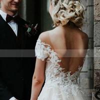 Romantic A Line Bohemian Wedding Dresses Floral Lace Bride Dress With Short Sleeves Applique Backless Light Champagne Boho Beach Bridal Gowns