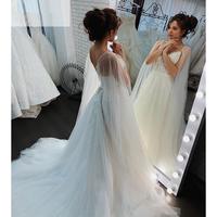 V neck bridal gown with white lace tulle straps
