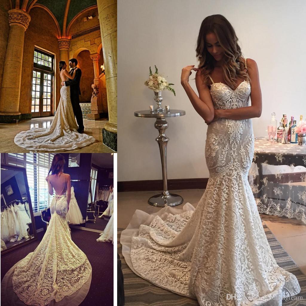Amazing Mermaid Lace Backless Wedding Dresses Spaghetti Straps Boho Trumpet Bridal Gowns