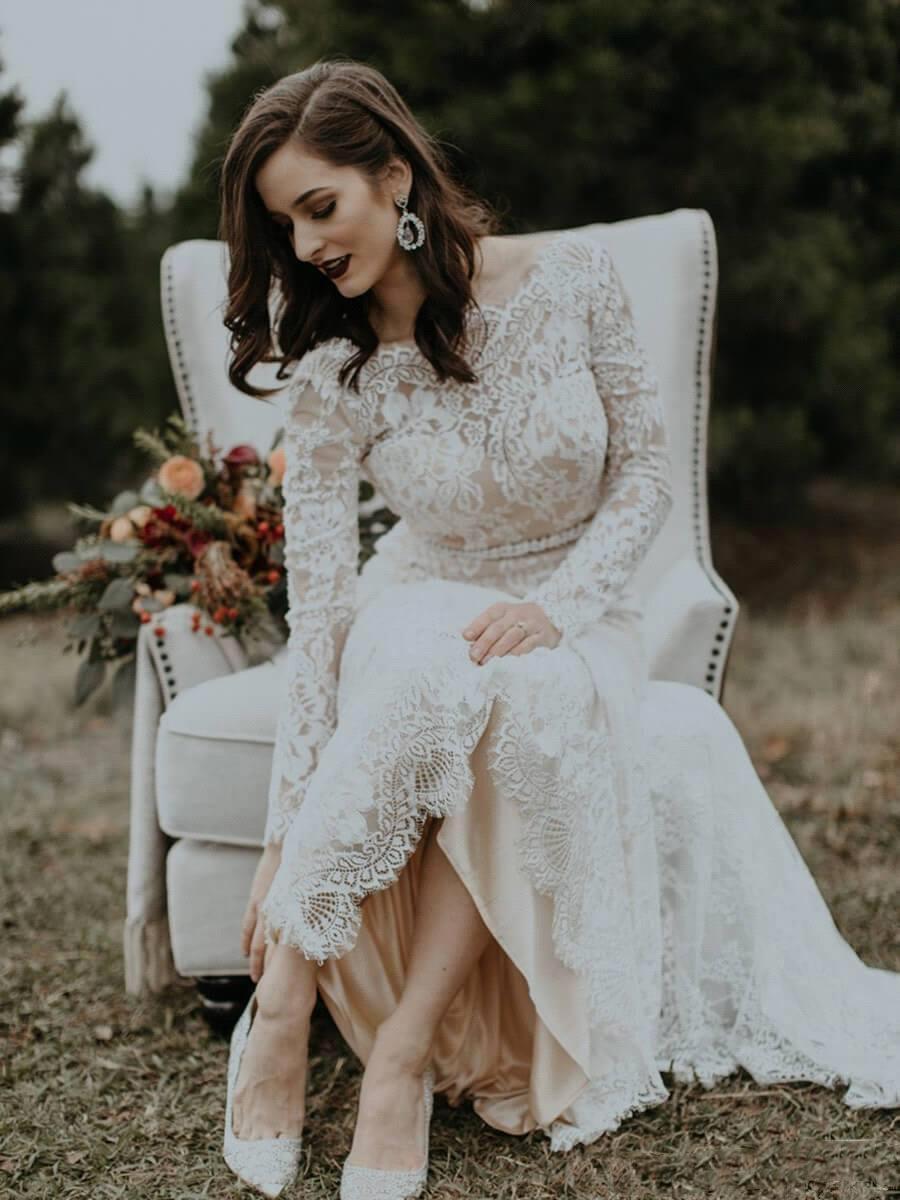 Bohemian Mermaid Lace Wedding Dresses Vintage Long Sleeves robe de mariage Bridal Gowns