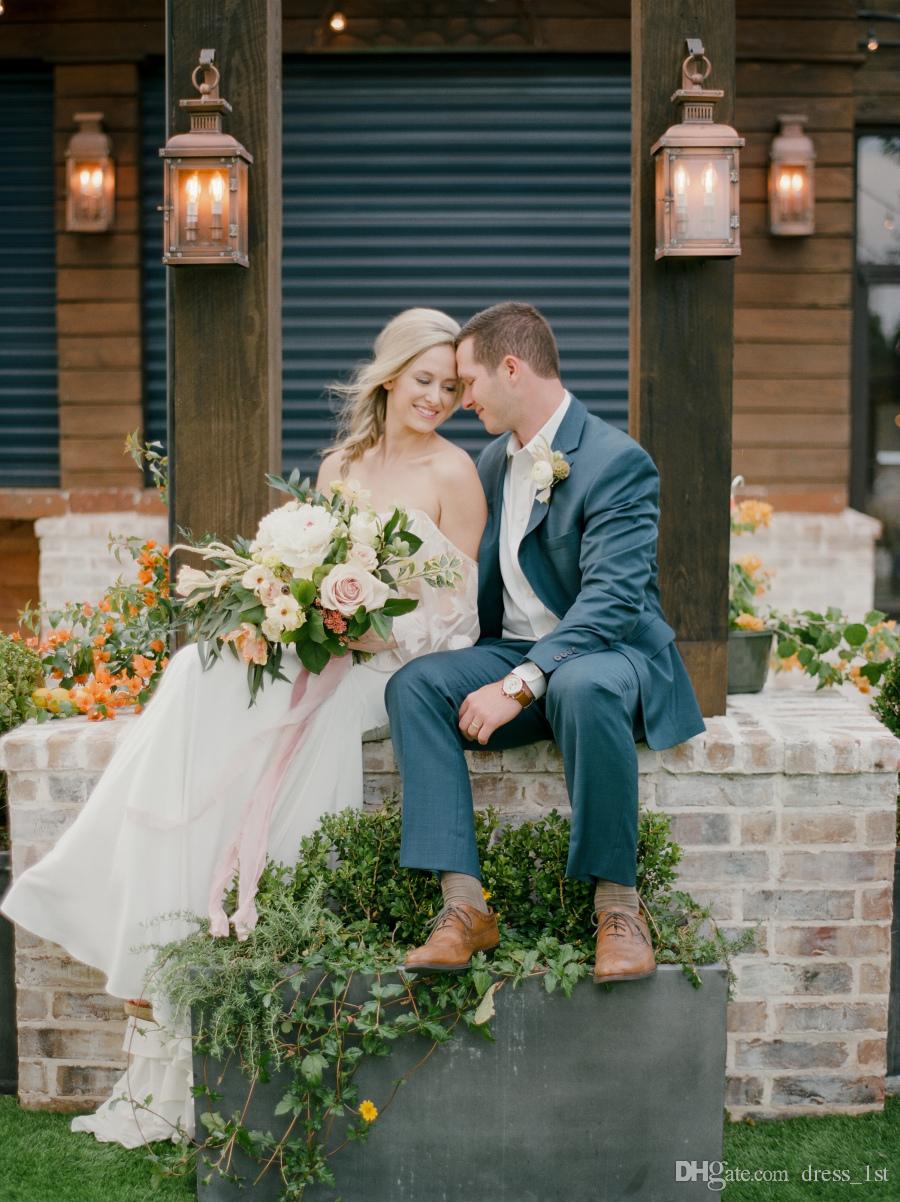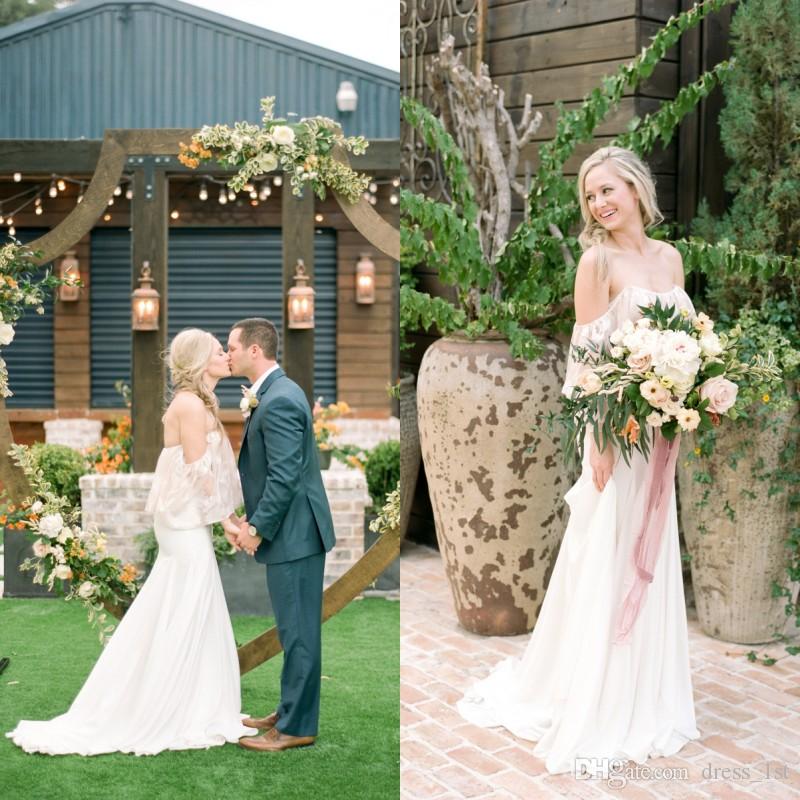 Summer Bohemian Off The Shoulder Wedding Dresses Mermaid With Lace Short SleeveTop Chiffon Long Bridal Gowns