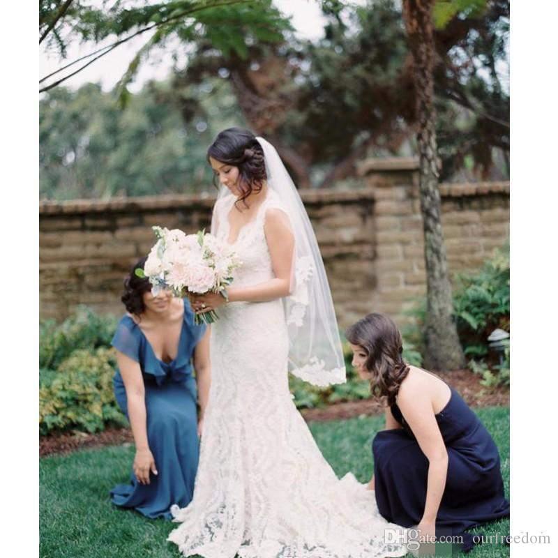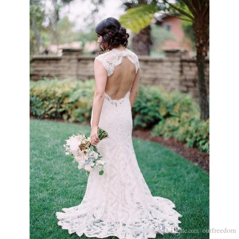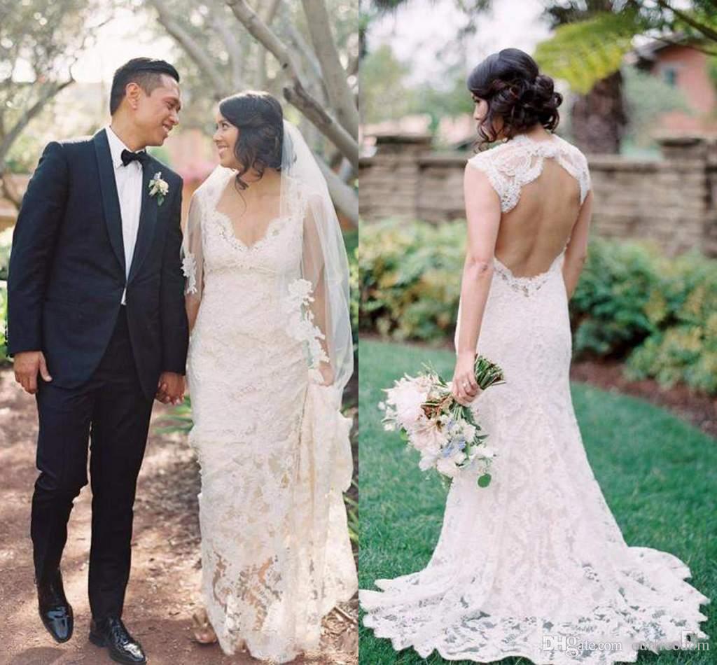 Sexy Backless V Neck Cap Sleeves Plus Size Vintage Bohemian Style Simple Bridal Gowns