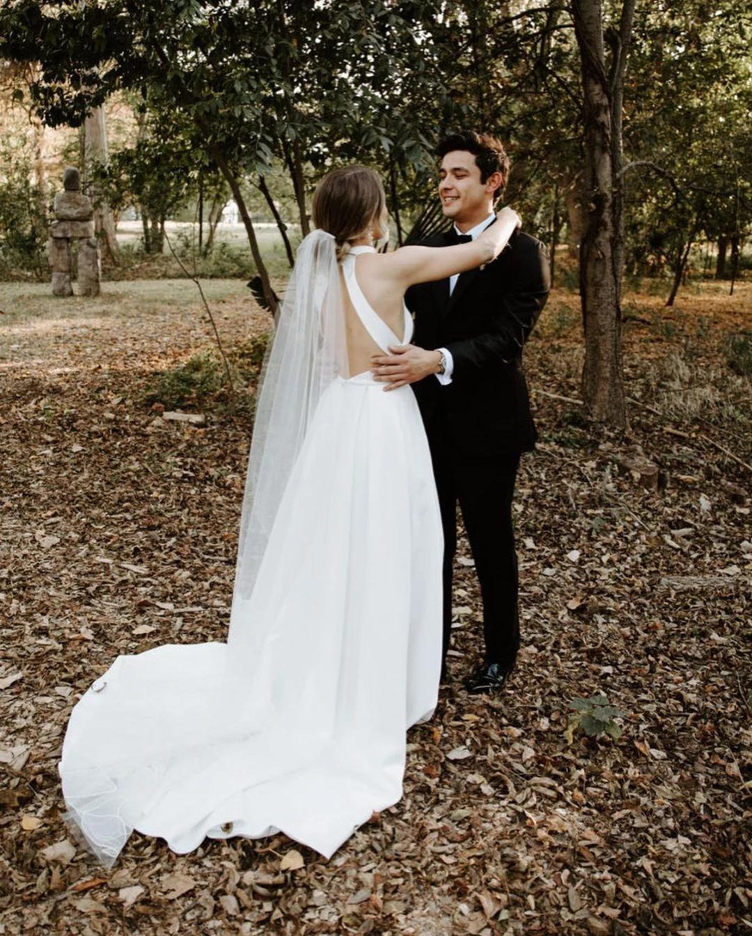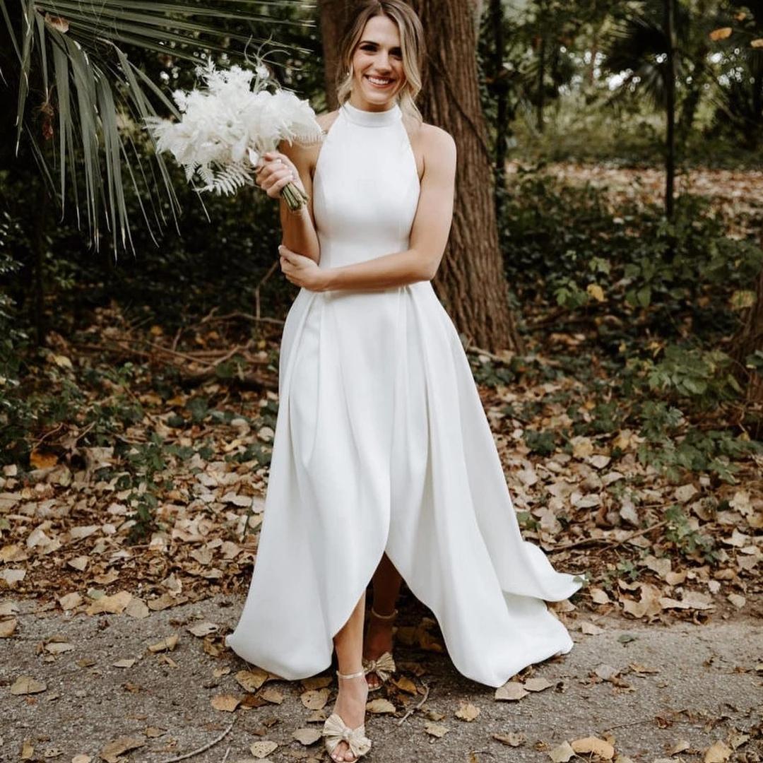 Simple Country Wedding Dresses Bridal Gowns Halter Short Front Long Back Satin Zipper Ruched Court Train High Low Designer