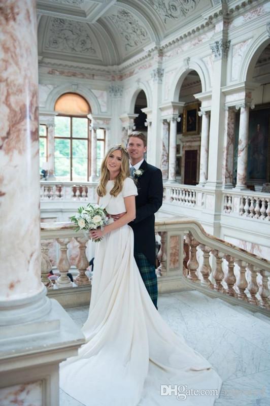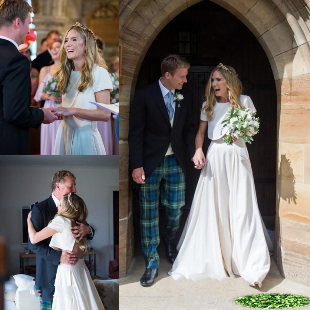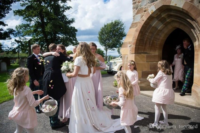 New Arrival Cheap Bohemian Two Pieces A-line Wedding Dresses Plus Size Short Sleeve Wedding Dress Bridal Gowns