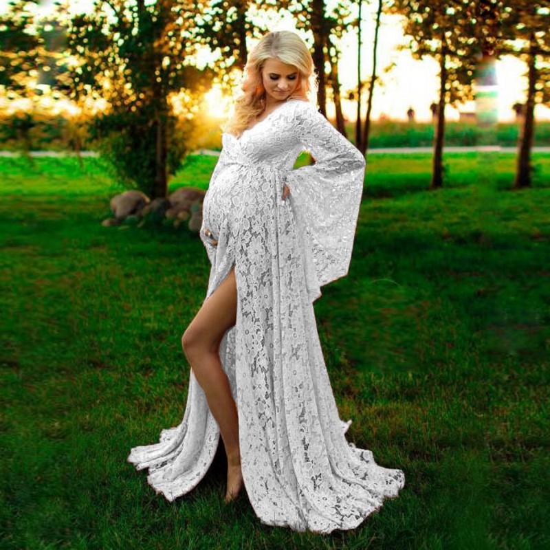 Elegant Long Wedding Dress Pregnant Woman V-Neck Plus Size Bridal Gown
