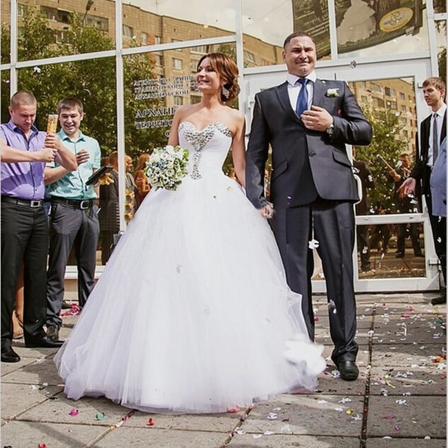 White Wedding Dresses Crystals Sweetheart Bodice Ball Gown Wedding Dress