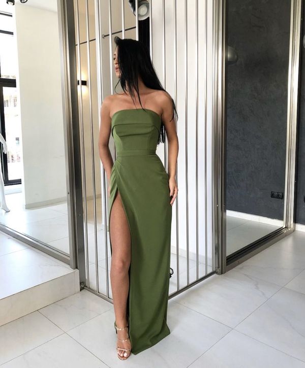Off the Shoulder Satin Prom Dress, Strapless Split Prom Dresses