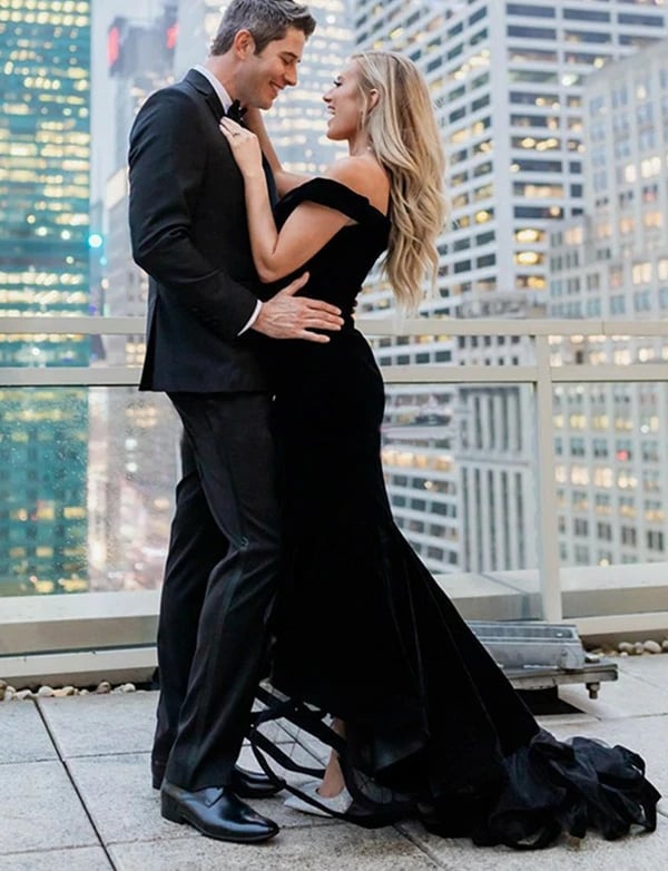 Mermaid Off the Shoulder Black Satin Long Prom Evening Party Dress