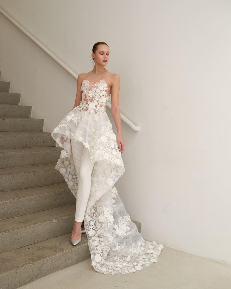 Fairy Off White Bohemian Wedding Dresses Jumpsuits Bridal Formal Gowns 3D Floral Lace Appliques Sheer Backless Long Boho Beach Bride Dress