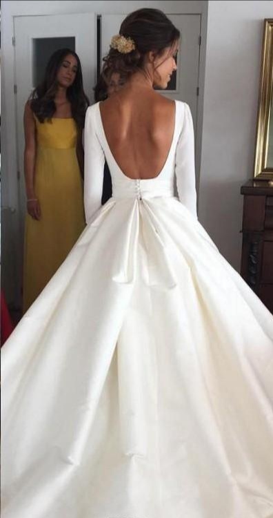 Simple Open Back Long Sleeve Wedding Dresses Ball Gown Bridal Gown bohemia A Line vestido de novia Cheap