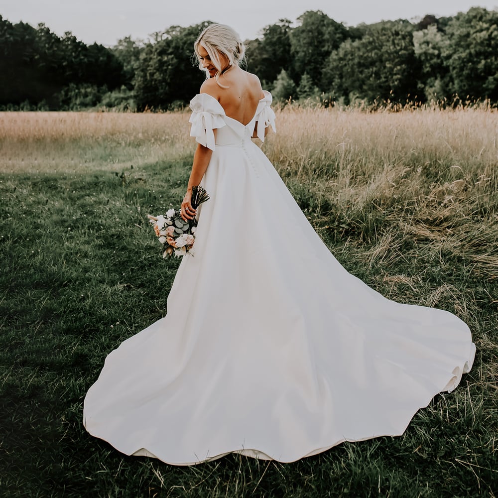 Off-Shoulder Beach Robe De Mariée Backless A-Line Sexy Sweep Train Satin Lantern Sleeves Boho Wedding Dress