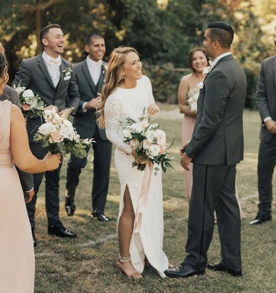 Bohemian wedding dress, simple long sleeve lace wedding dress